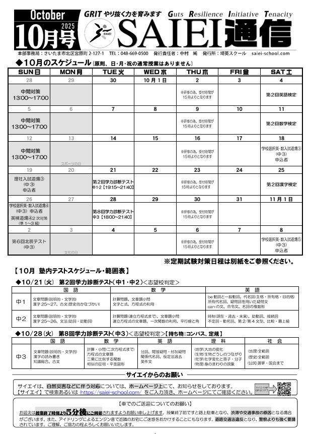 10月の授業日のご確認は こちらのカレンダー からご確認ください。