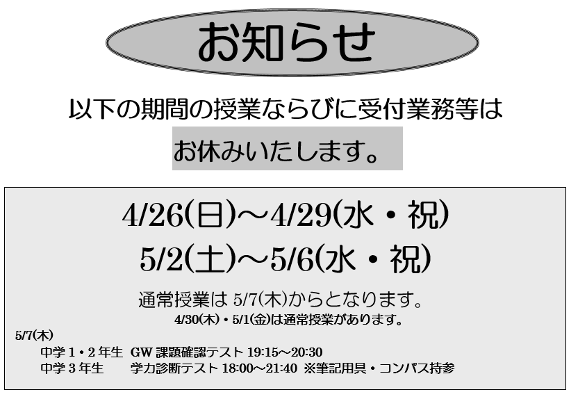 土・日・祝の対策では教室長および複数講師が教室に常駐しているので、わからない問題もすぐにその場で解決できます!